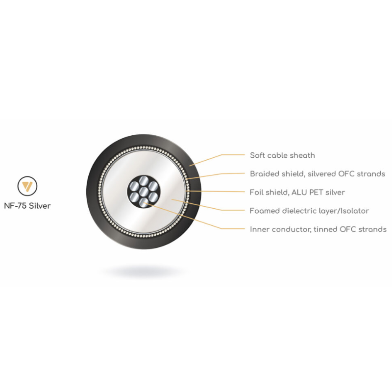 Il VIABLUE™ NF-75 Silver è un cavo coassiale S/PDIF progettato per garantire una trasmissione digitale ad alta precisione, veloce e priva di distorsioni, anche su lunghe distanze. Ideale per applicazioni audio professionali e impianti Hi-Fi di alto livello.